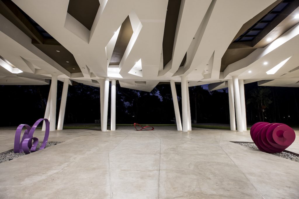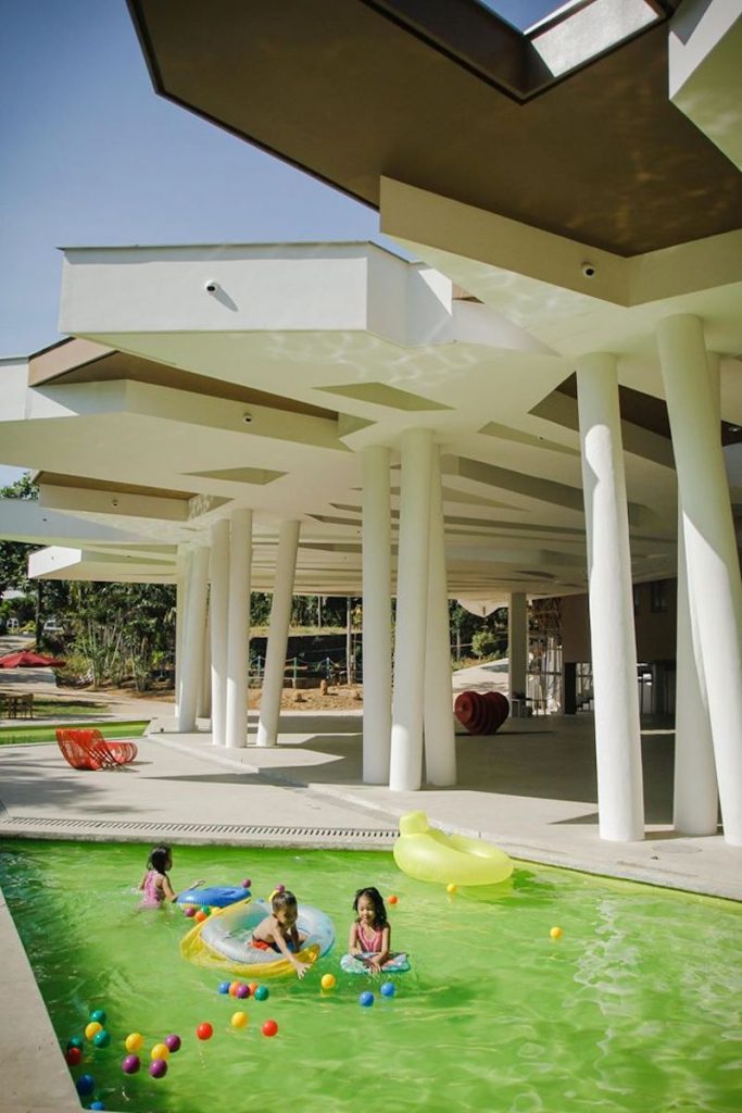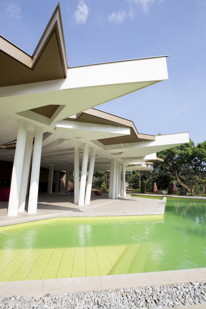 Isla Palma is an events venue, whose design attempts to replicate the pattern of the overlapping eaves around the site the roof covering, thru a series of leaf-like layers meant to usher in visitors from the point of drop-off to enter the expansive space within. These patterns terminate as  a jagged profile at the roof seams, mimicking the way coconut leaves point outwards towards the onlooker from its stem. Natural light is allowed to penetrate towards the interiors via skylights, achieving a filtered quality of light similar to when it is under a foliage.