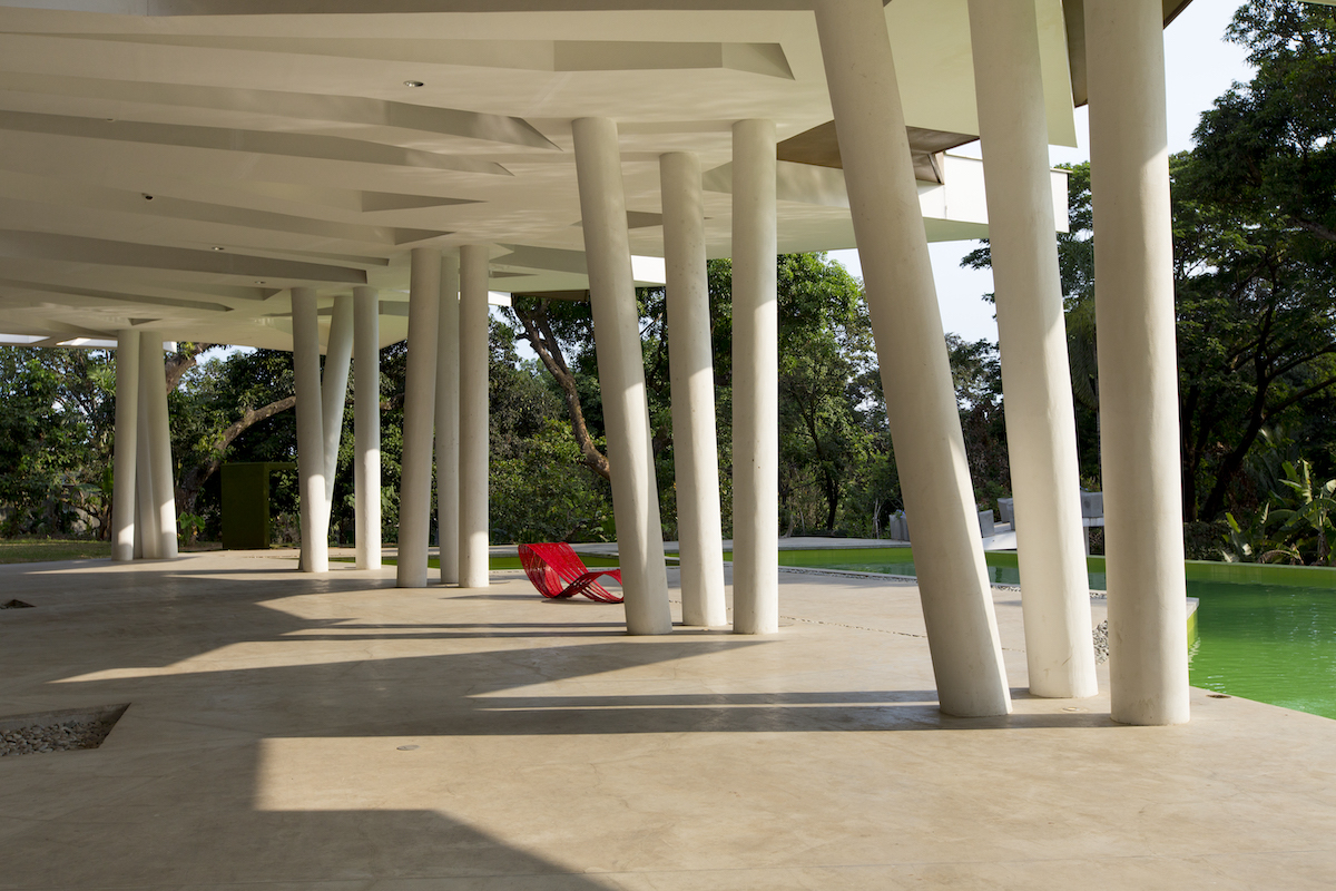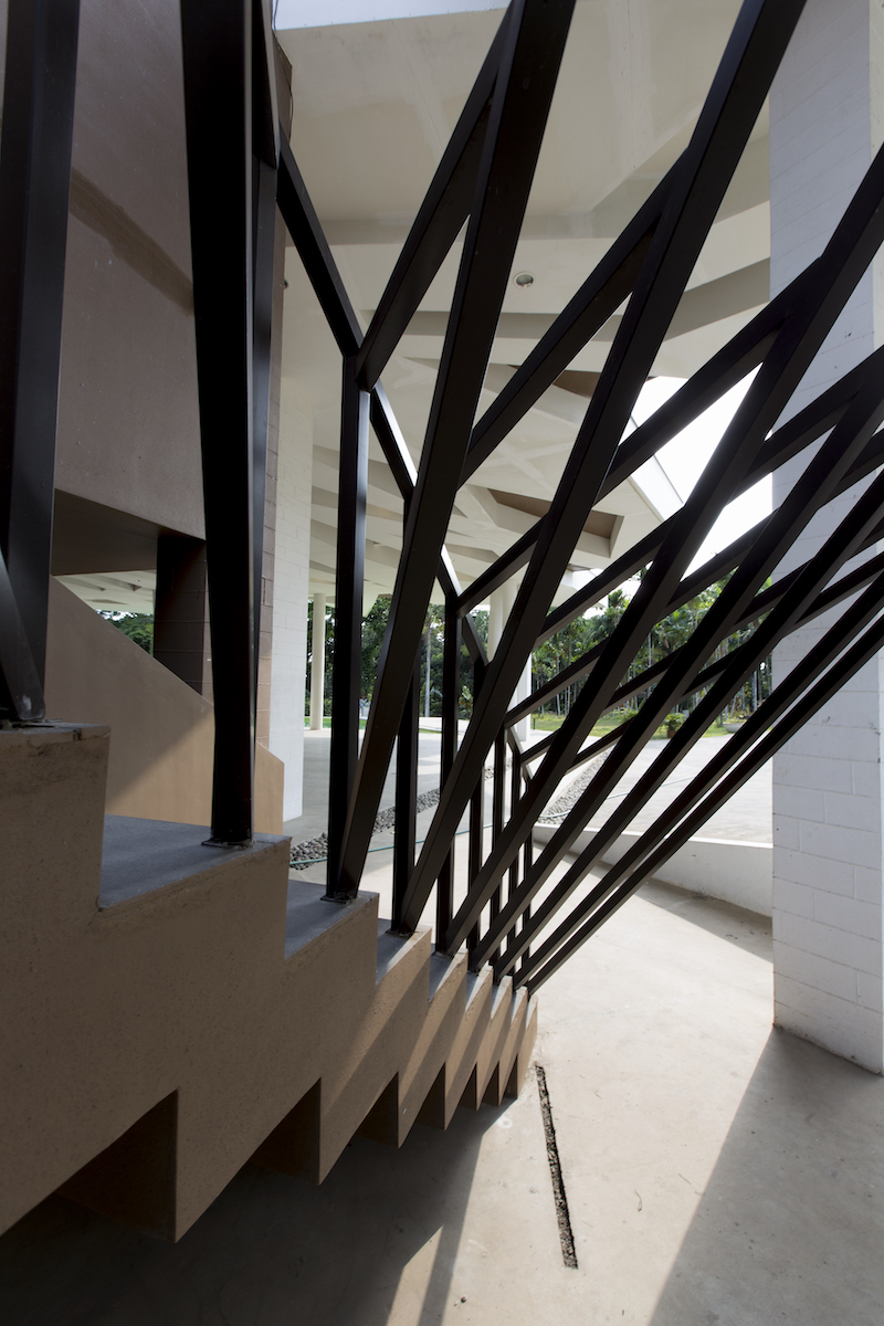 The columnation of the structure also attempts to mimic the  the vertical rhythm that the coconut tree trunks created, as if coordinating a cadence between nature on earth and a higher being above. We replicated this as our structural supports, clustered in specific areas with each “trunk” tilting in different angles, as if suggesting the truth in nature that nothing in it is perfectly straight or rectilinear, yet everything is perfectly in its right place