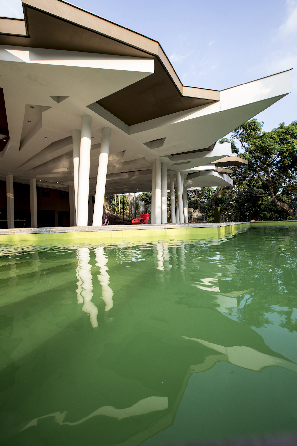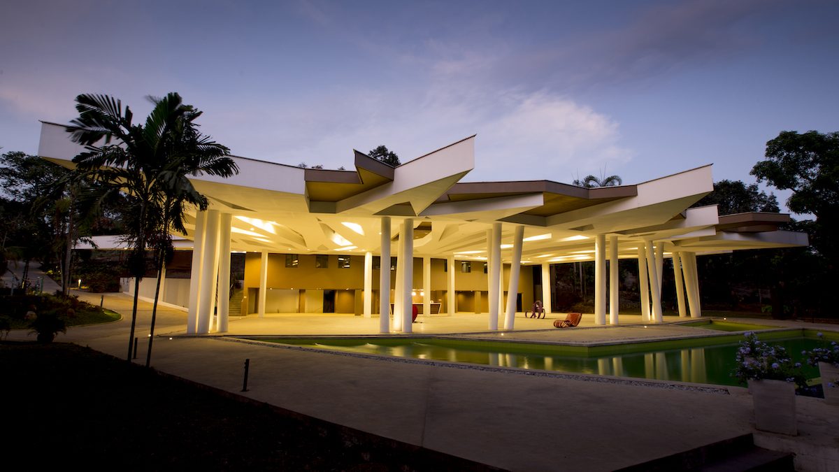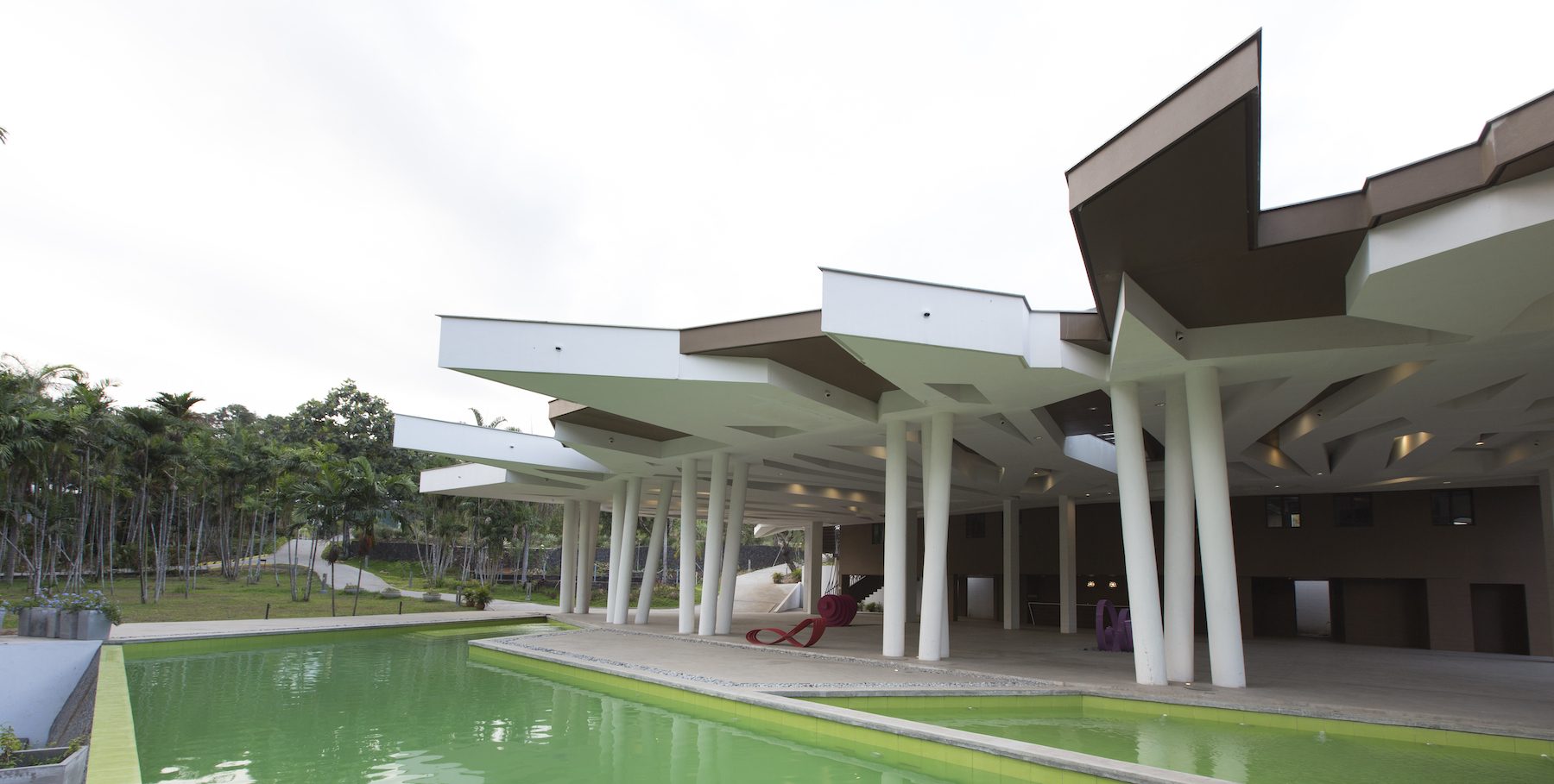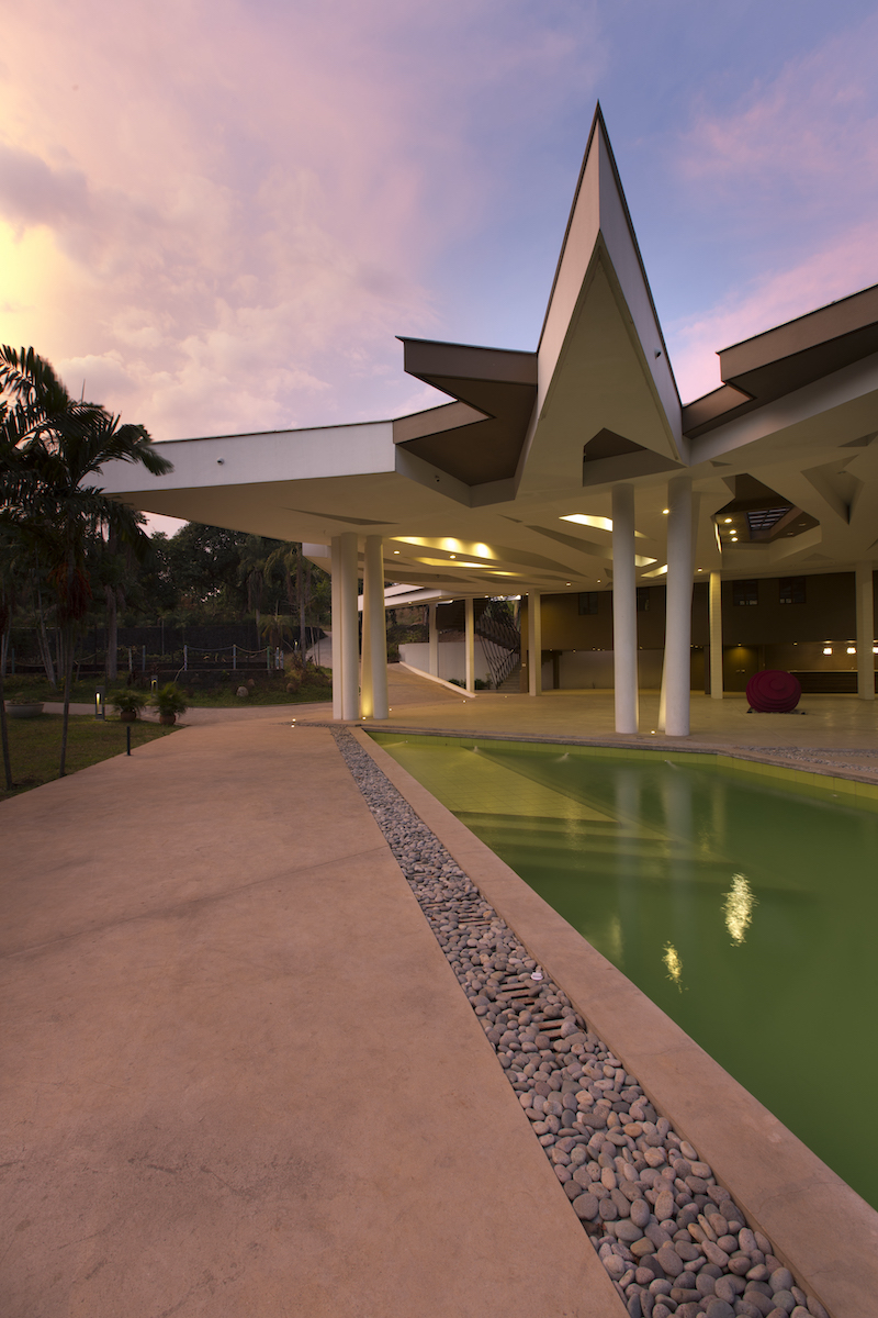 Isla Palma is an events venue, whose design attempts to replicate the pattern of the overlapping eaves around the site the roof covering, thru a series of leaf-like layers meant to usher in visitors from the point of drop-off to enter the expansive space within. These patterns terminate as  a jagged profile at the roof seams, mimicking the way coconut leaves point outwards towards the onlooker from its stem. Natural light is allowed to penetrate towards the interiors via skylights, achieving a filtered quality of light similar to when it is under a foliage.