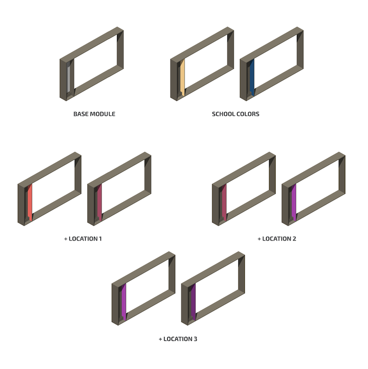 Color is used strategically and may be integrated in the façade framework. A color system could be developed to express the school identity, as well as differentiate each building from one another. The result is a celebratory, vibrant, and more creative atmosphere, rather than stiff and serious environments that is typically associated with established learning institutions.