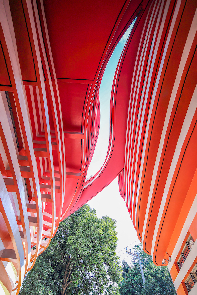 All these disparate masses were connected by a series of curved canopies that flow in shape sequentially, as if frozen in movement. The form is reminiscent of the Banaue Rice Terraces, subtly representing Filipino culture and heritage in the building, but in an abstract and contemporary way. If viewed while on the move, the canopies seem to be changing and morphing in shape from different angles as well.